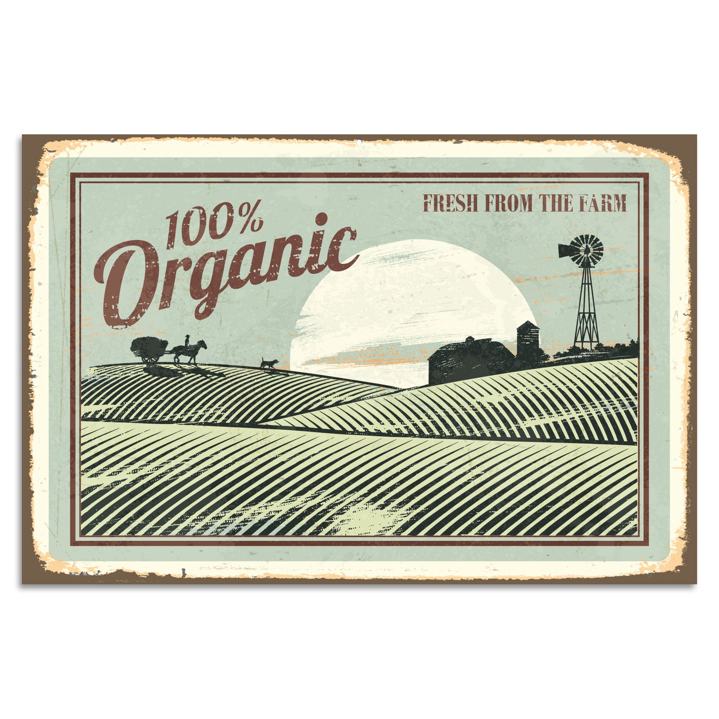 Blechschild 100% Organic - Fresh from the farm 20x30cm