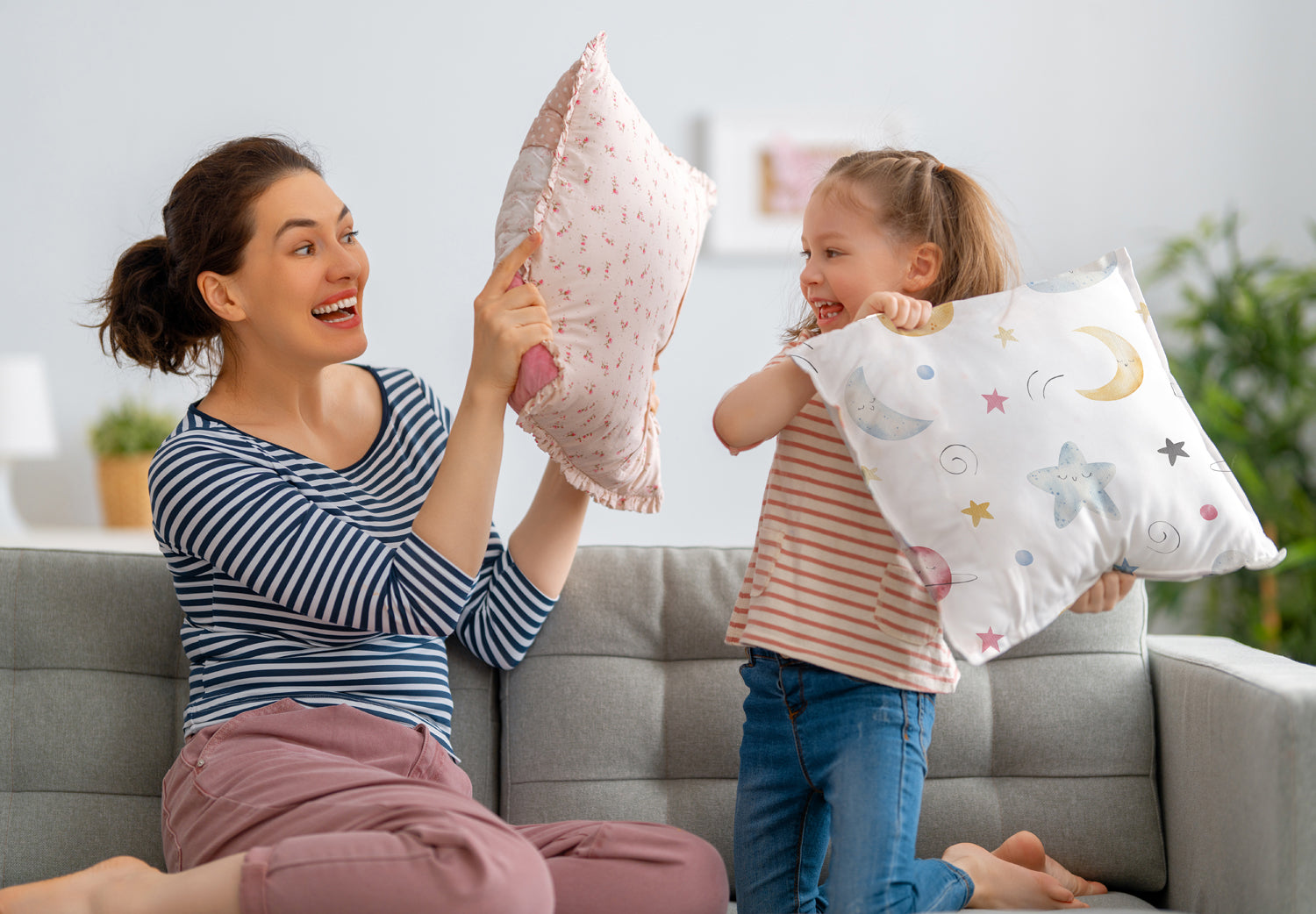 Hergestellt aus weichem, hochwertigem Stoff, sind die Bezüge nicht nur besonders angenehm auf der Haut, sondern auch pflegeleicht und strapazierfähig – ideal für den turbulenten Alltag mit Kindern. Dank des praktischen Reißverschlusses lassen sie sich mühelos wechseln und waschen.
