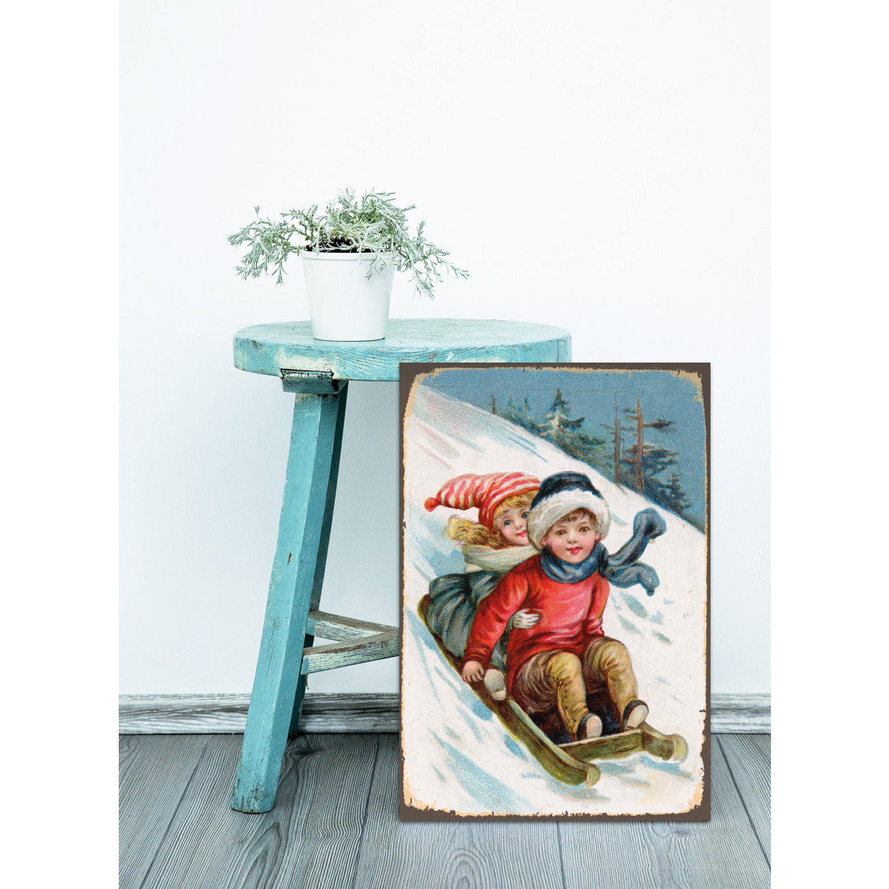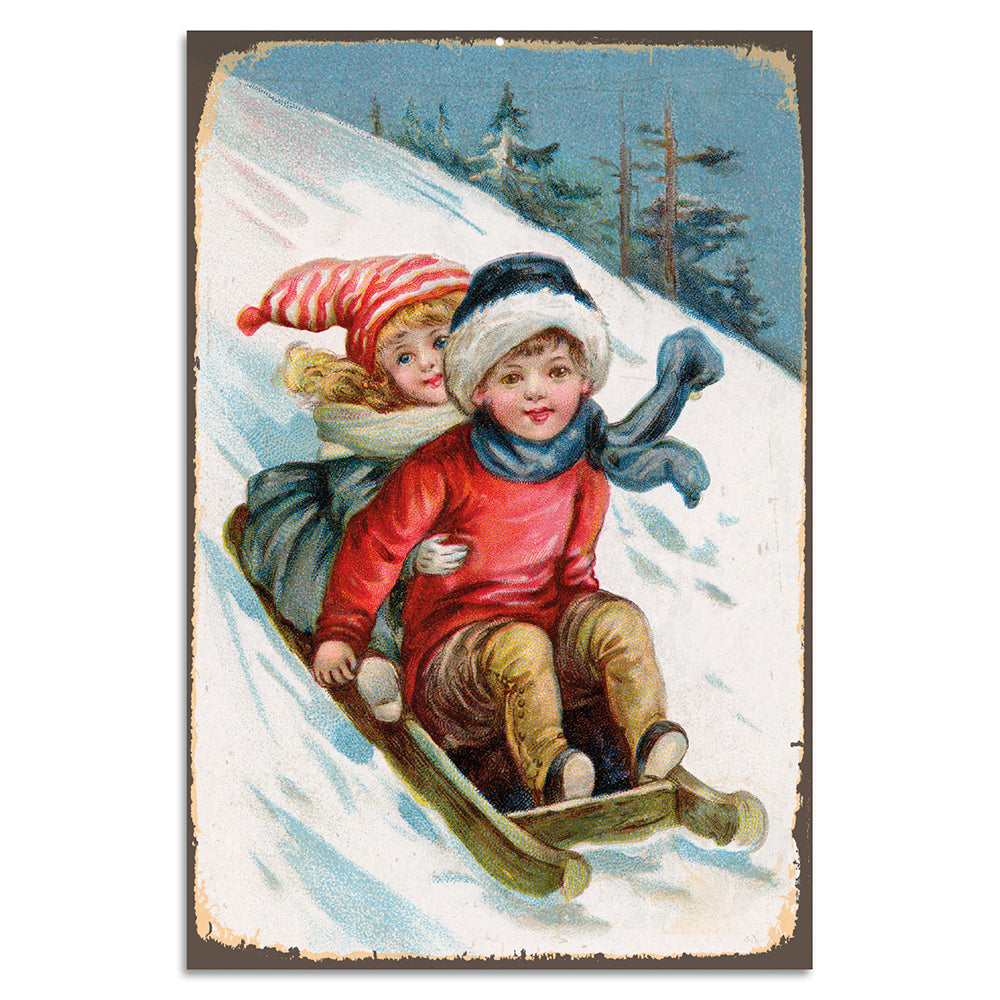 Blechschild - Schlitten fahren 20x30cm